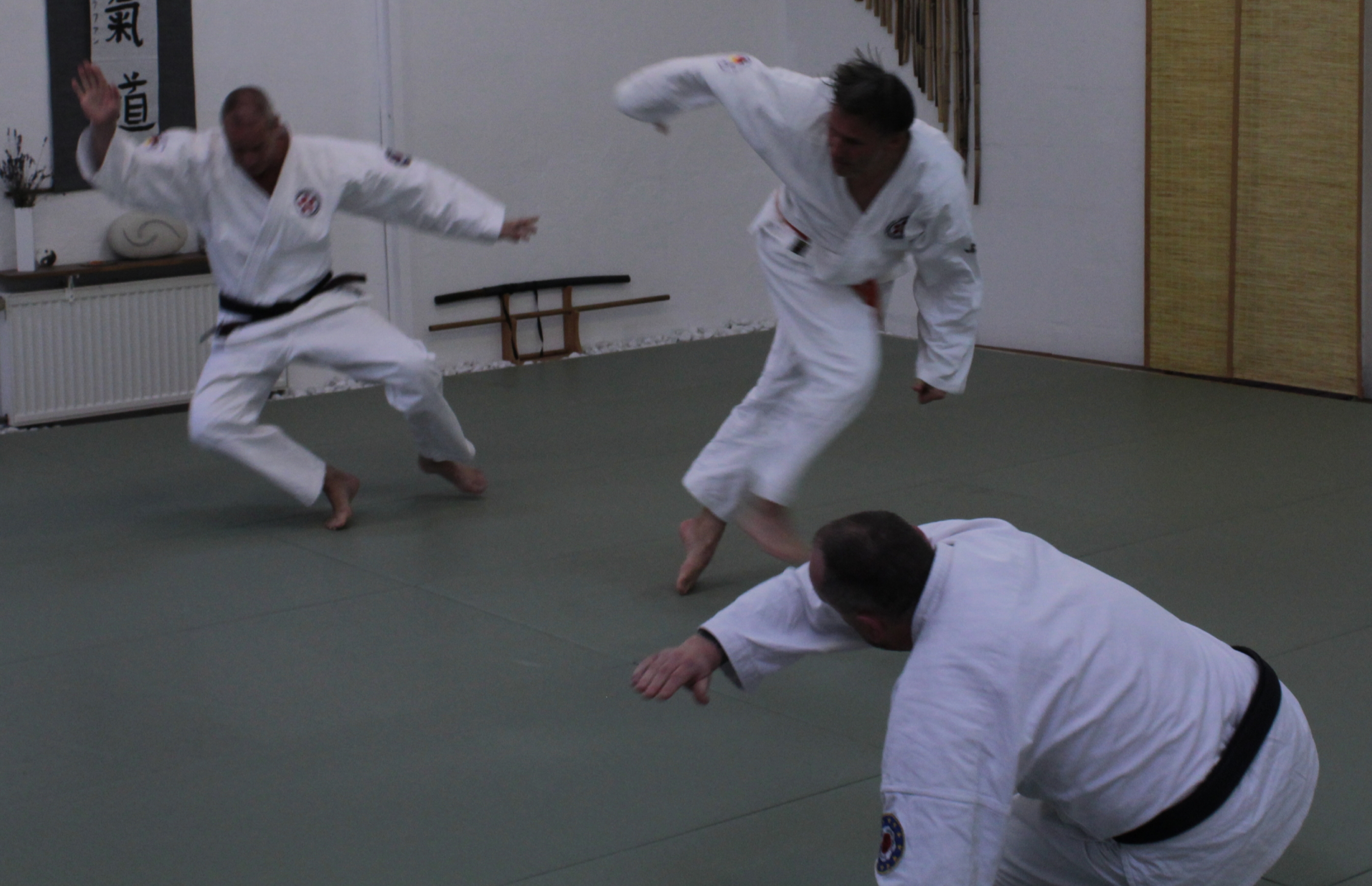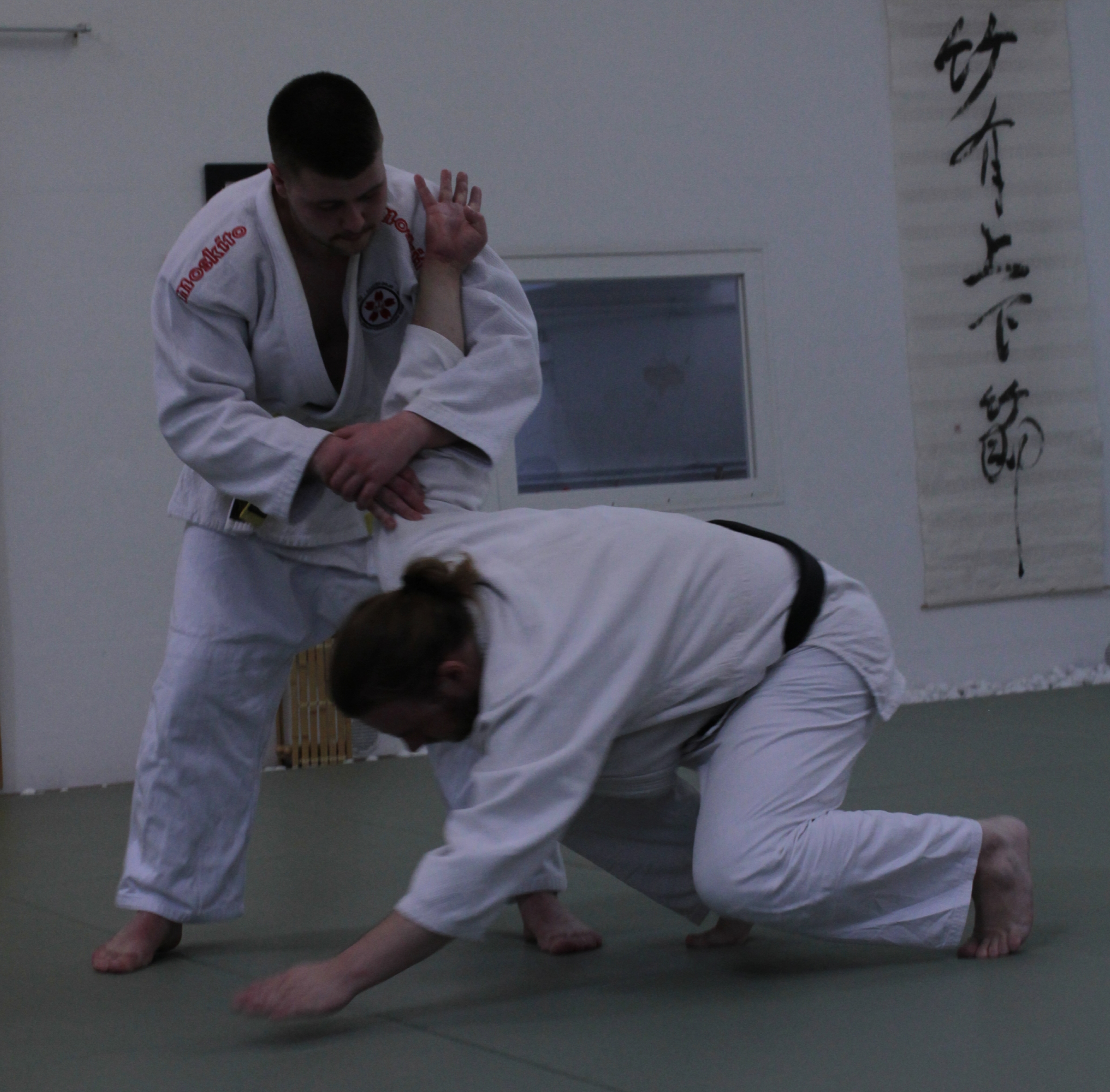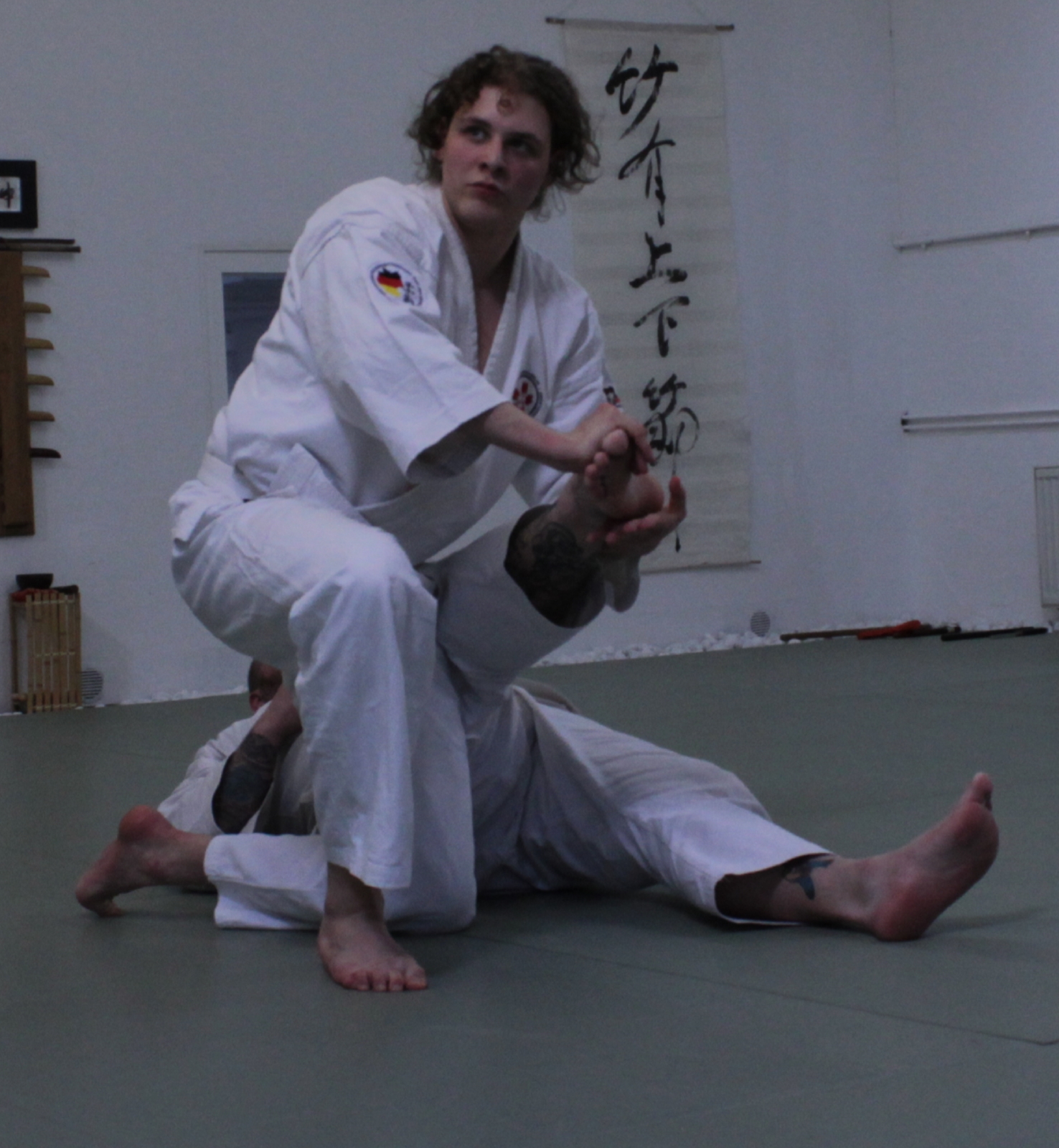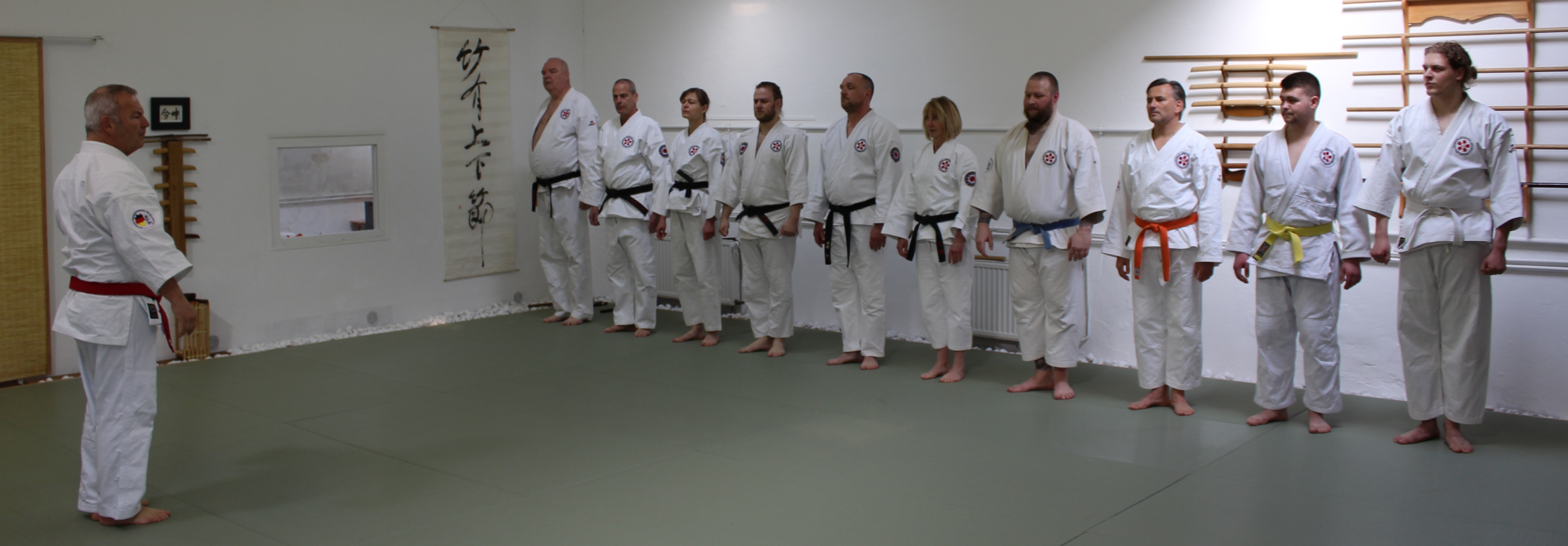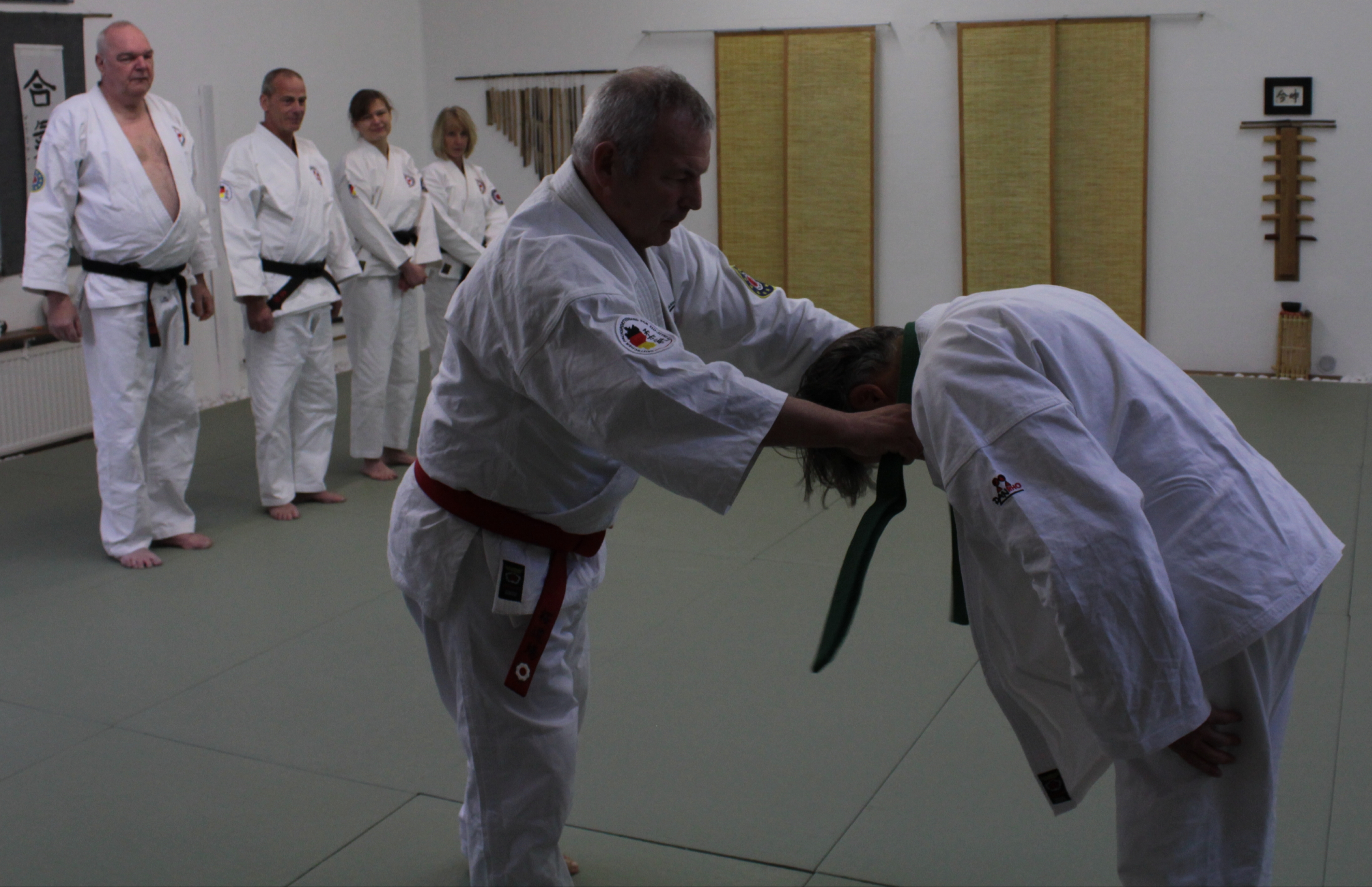 Um Punkt 15:00 Uhr stellten sich drei Prüflinge der Herausforderung und strebten die nächsthöhere Graduierung an. Unter Leitung von Sensei Kalla Bergers begannen sie mit der Vorstellung der Fallschule, um im weiteren Verlauf die Karatetechniken, Würfe, Hebel, sowie für die höheren Kyu-Graduierungen die Würgetechniken der Prüfungskommission vorzuführen.