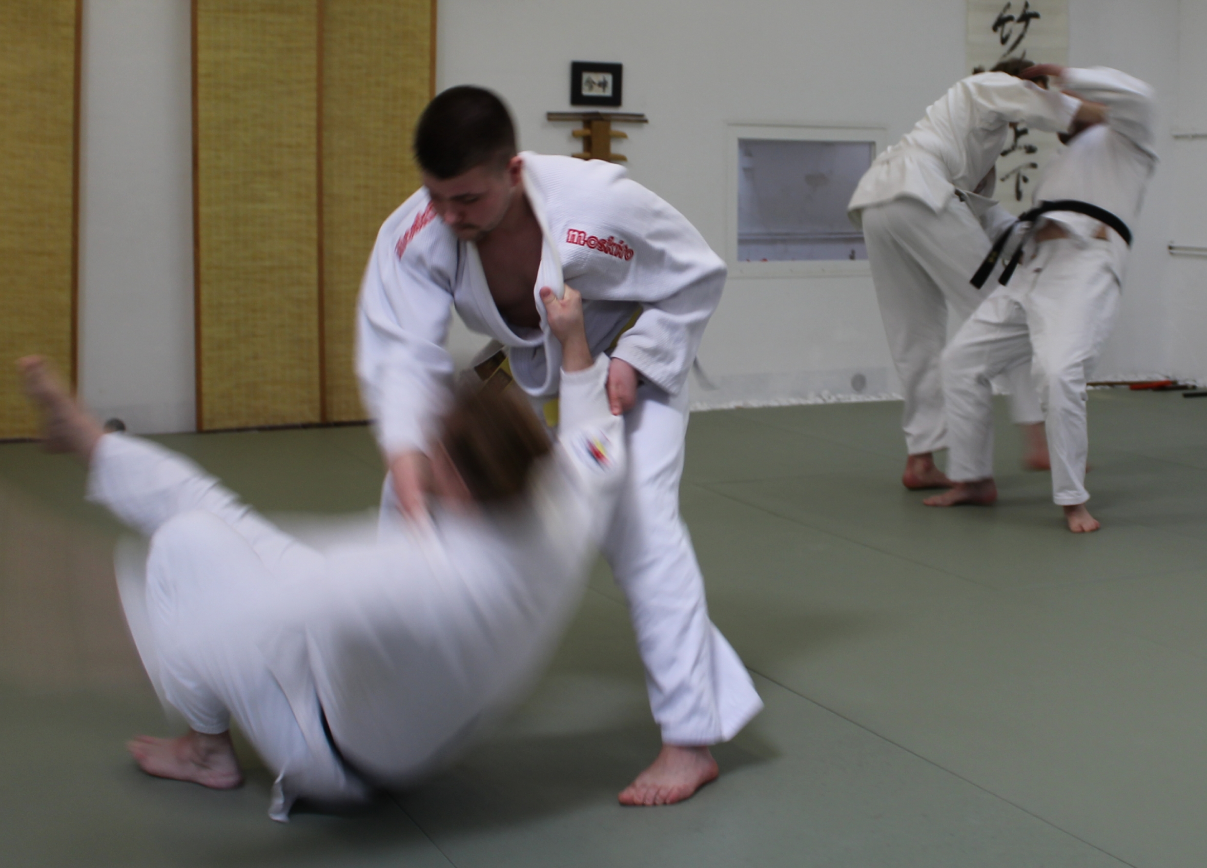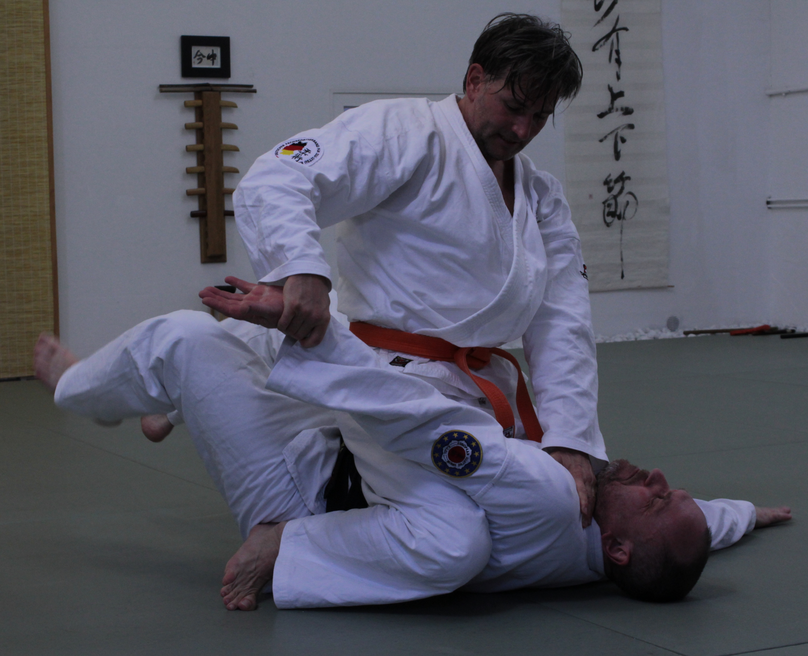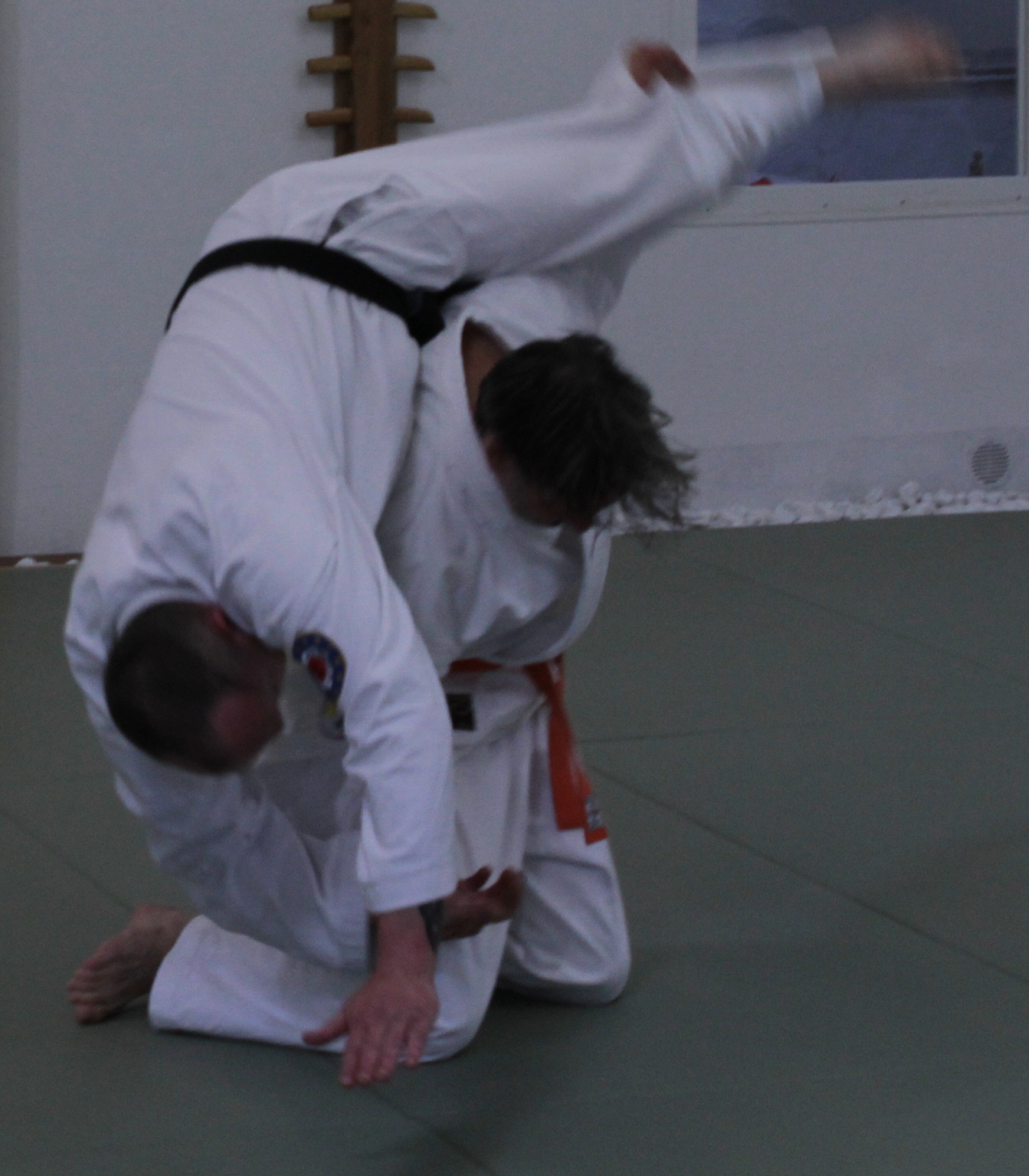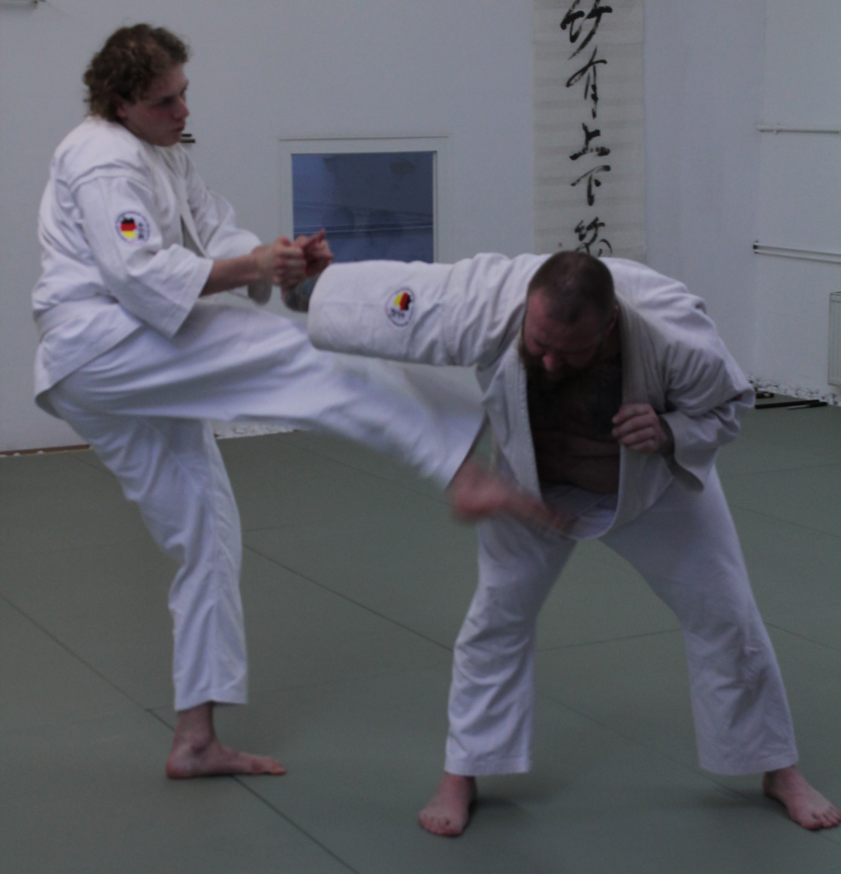 Um Punkt 15:00 Uhr stellten sich drei Prüflinge der Herausforderung und strebten die nächsthöhere Graduierung an. Unter Leitung von Sensei Kalla Bergers begannen sie mit der Vorstellung der Fallschule, um im weiteren Verlauf die Karatetechniken, Würfe, Hebel, sowie für die höheren Kyu-Graduierungen die Würgetechniken der Prüfungskommission vorzuführen.