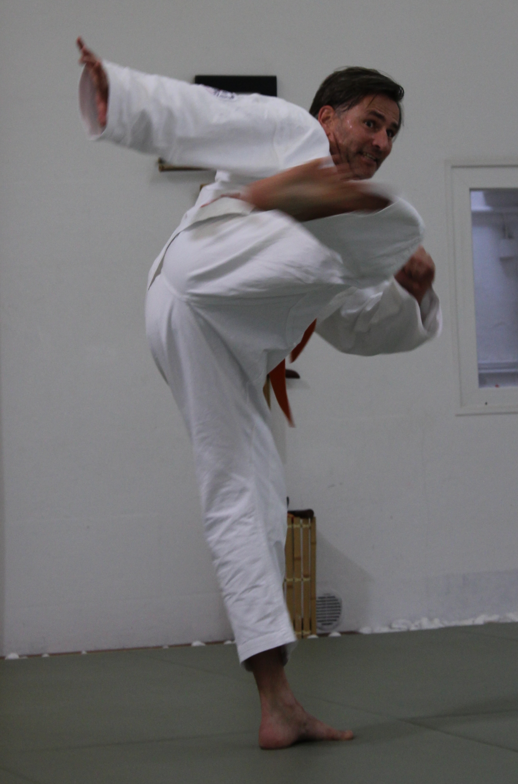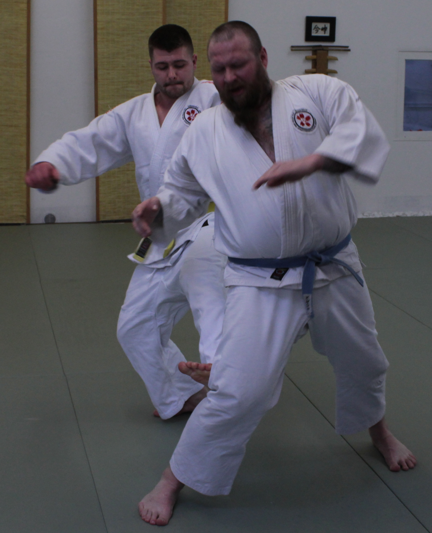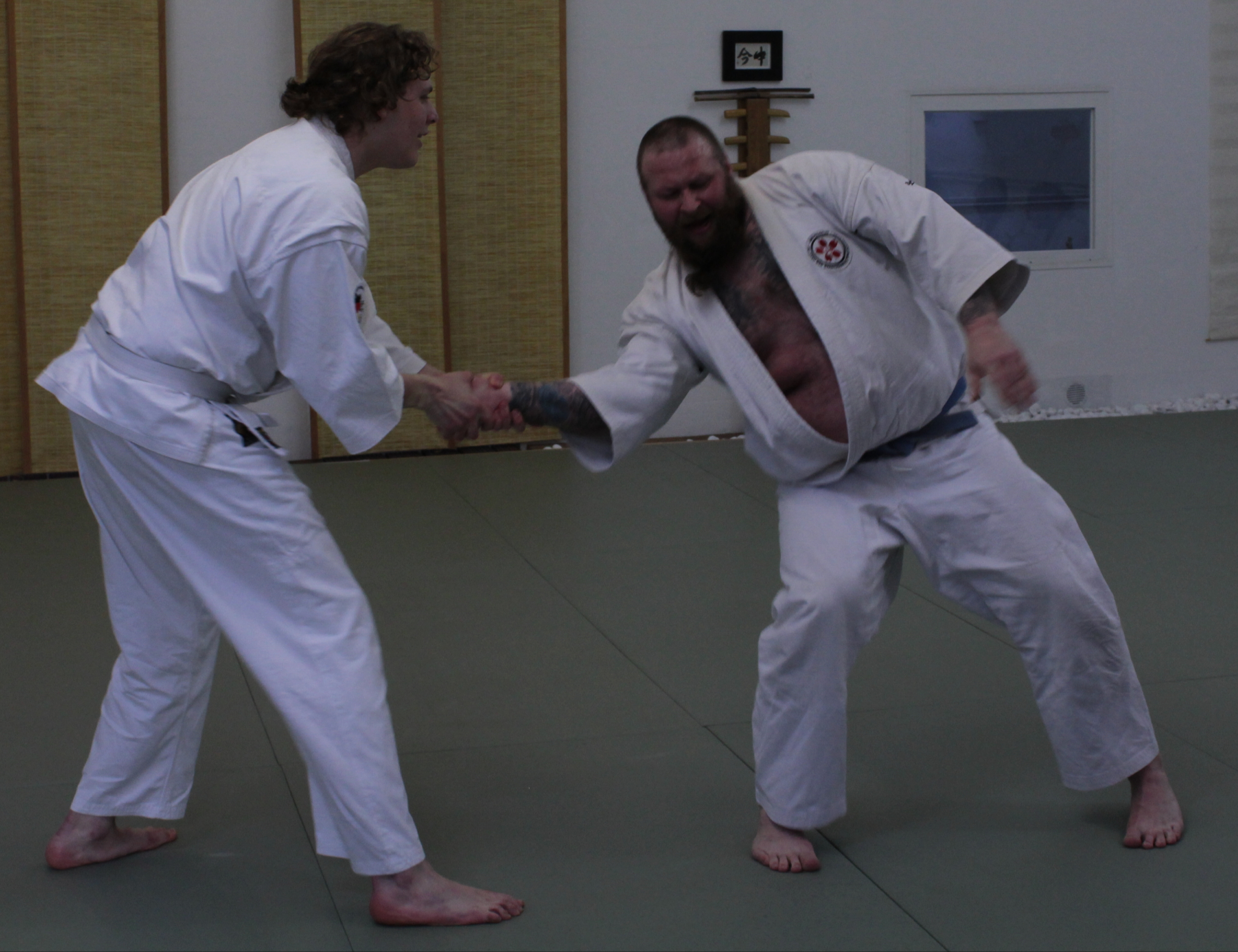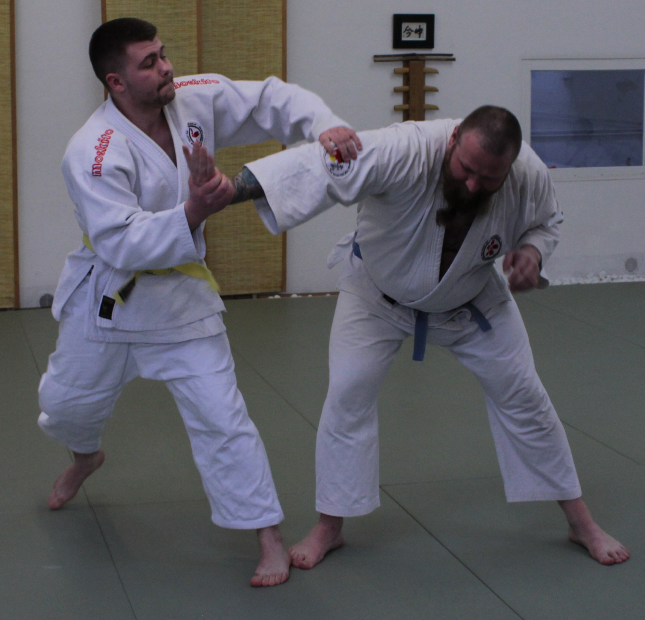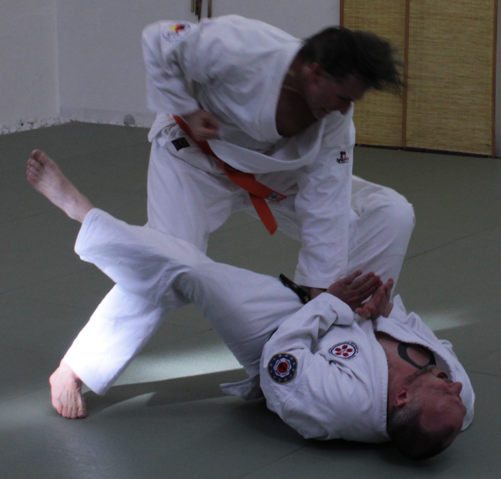 Um Punkt 15:00 Uhr stellten sich drei Prüflinge der Herausforderung und strebten die nächsthöhere Graduierung an. Unter Leitung von Sensei Kalla Bergers begannen sie mit der Vorstellung der Fallschule, um im weiteren Verlauf die Karatetechniken, Würfe, Hebel, sowie für die höheren Kyu-Graduierungen die Würgetechniken der Prüfungskommission vorzuführen.