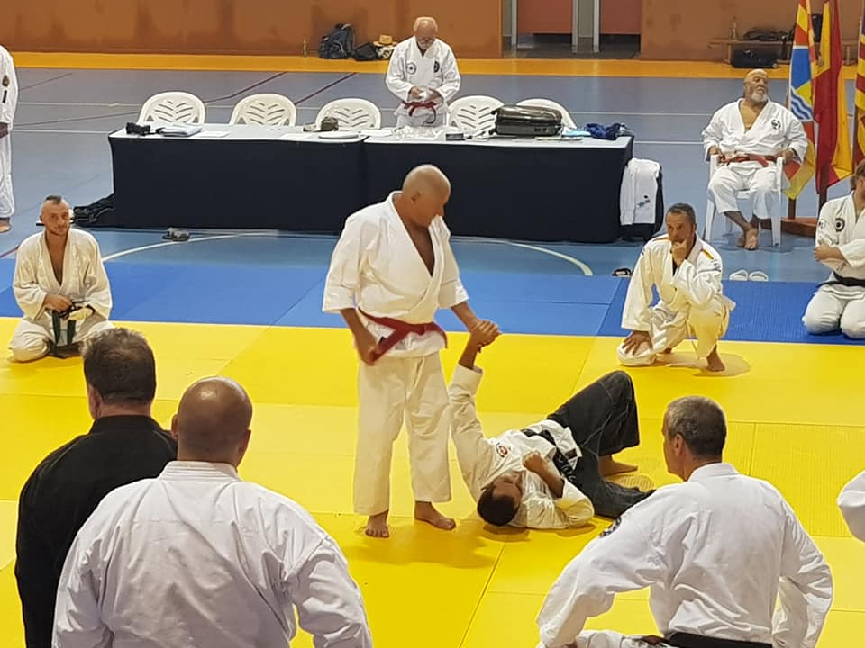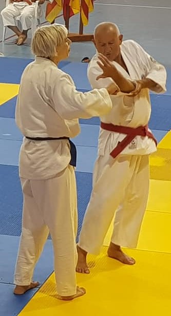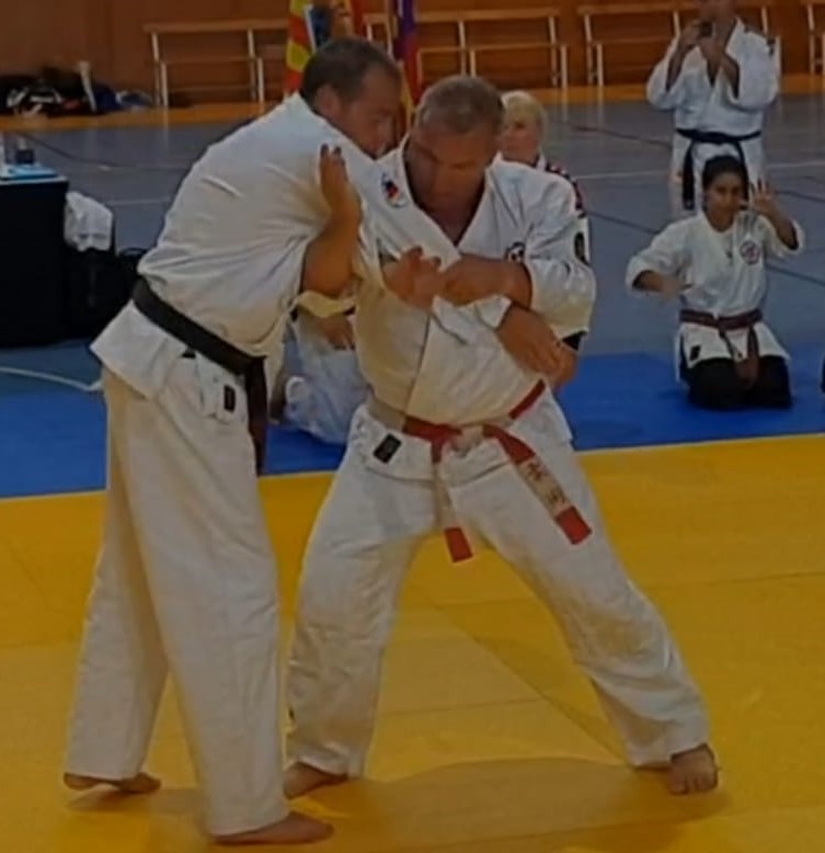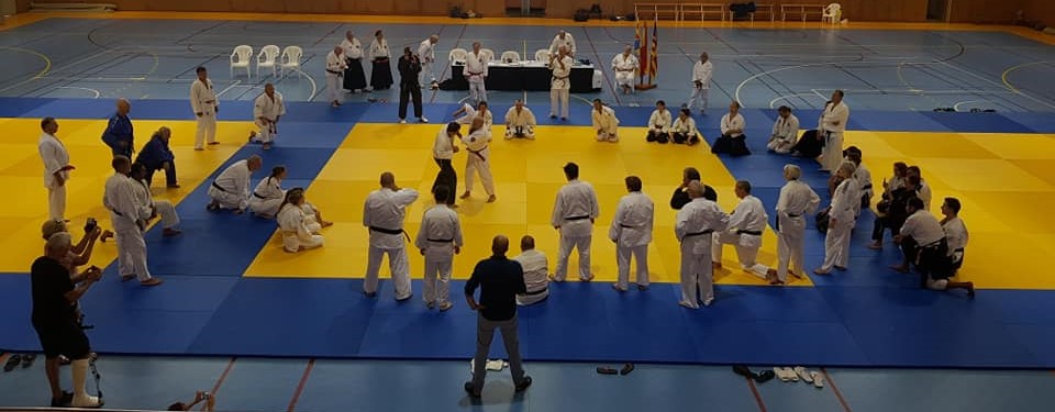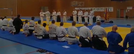 Am Samstag wurde dann auch der Lehrgang in der Multifunktionshalle Antoni Blanc in Sant Francesc de Formentera pünktlich um 14:00 Uhr eröffnet. Nach einem knackigen Aufwärmtraining in der ohnehin schon gut erwärmten Halle wurden die anwesenden Großmeister gebeten, eine Technik welche zuvor bebildert wurde um diese in ein Buch zu binden, den anwesenden Sportlern zu vermitteln. So endete der kurzweilige Nachmittag nach vier Stunden um 18:00 Uhr eigentlich viel zu schnell.